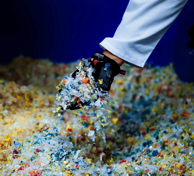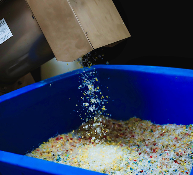Treated polymer flake dispensed in the receptacle can now be collected and sent to a material recycling facility for separation and pelletisation.